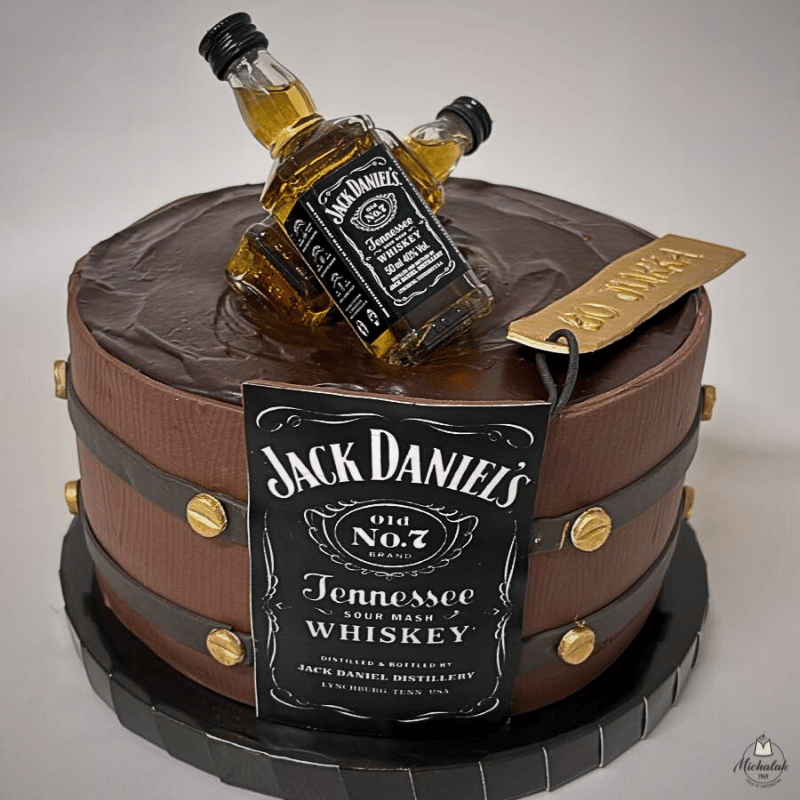 Elegancki tort inspirowany kultową whisky Jack Daniel’s — doskonały wybór na urodziny, jubileusz lub wieczór panieński czy kawalerski. Połączenie delikatnego biszkoptu, kremu o głębokim smaku i stylowej dekoracji zachwyci każdego fana tego wyjątkowego trunku.